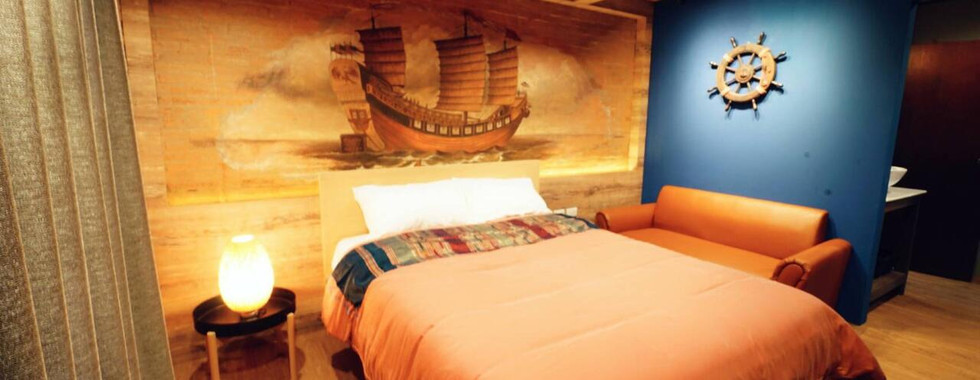 ห้องพักแบบ Studio ที่ตกแต่งด้วยบรรยากาศของการเดินทาง และการเดินเรือ